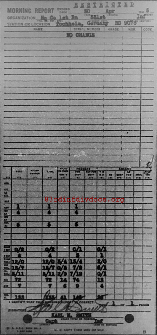 Morning report HQCO1BN/331 for April 30, 1945