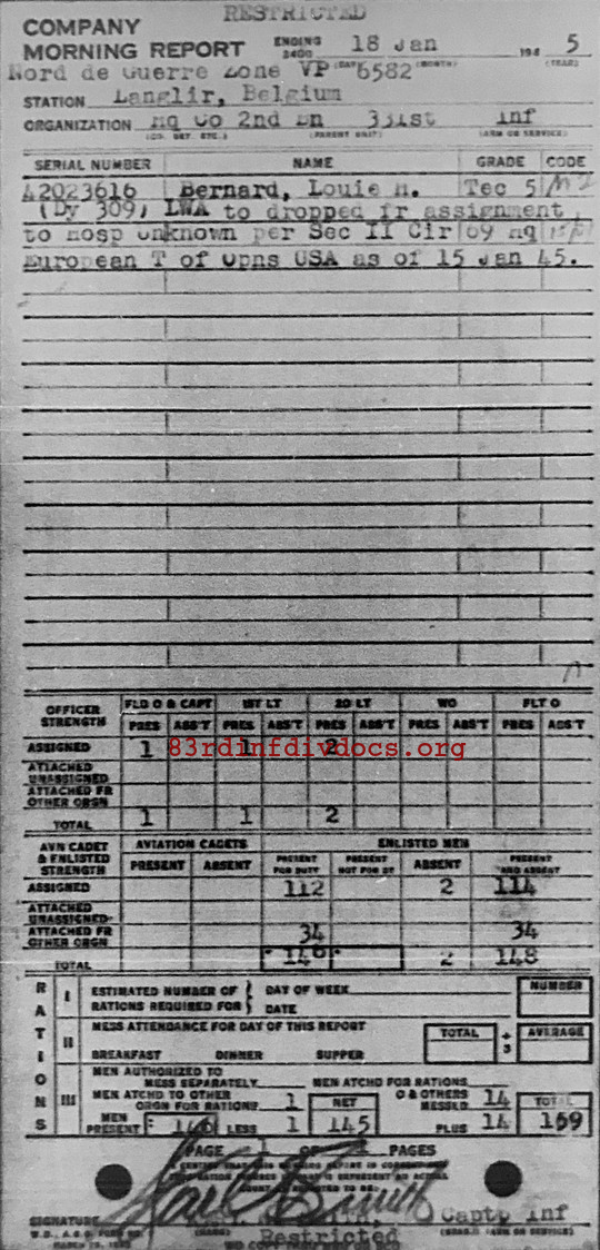 Morning report HQCO2BN/331 for January 18, 1945