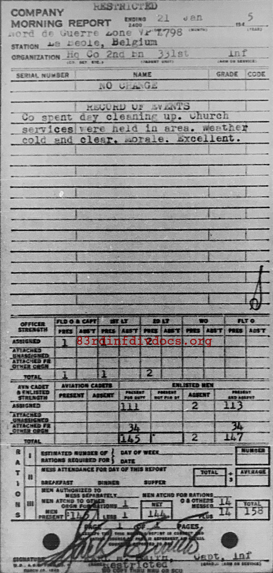 Morning report HQCO2BN/331 for January 21, 1945