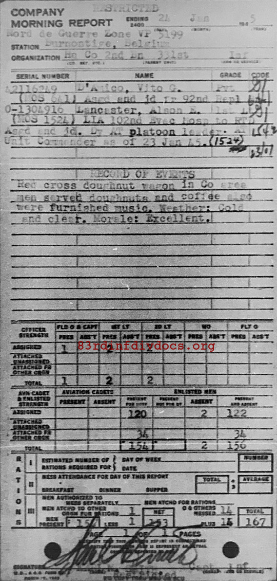 Morning report HQCO2BN/331 for January 24, 1945