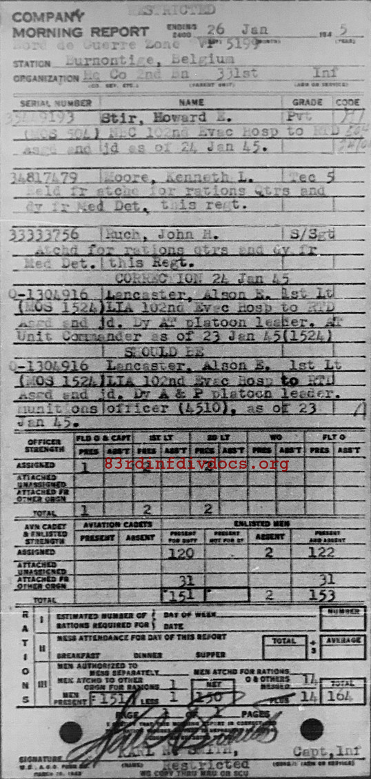 Morning report HQCO2BN/331 for January 26, 1945
