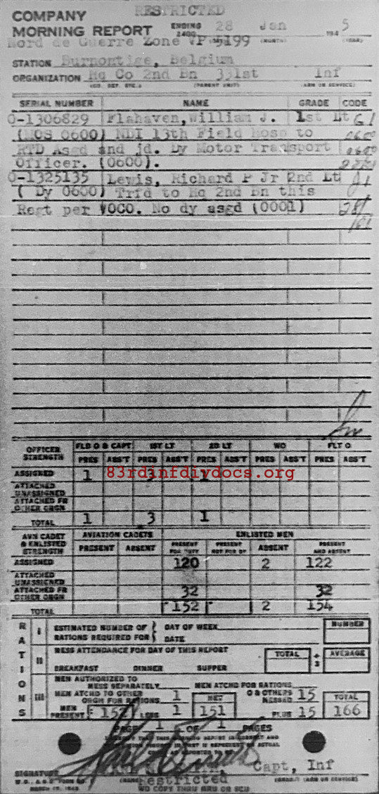 Morning report HQCO2BN/331 for January 28, 1945