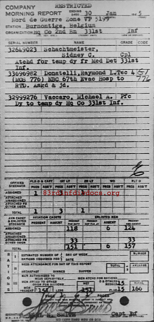 Morning report HQCO2BN/331 for January 30, 1945