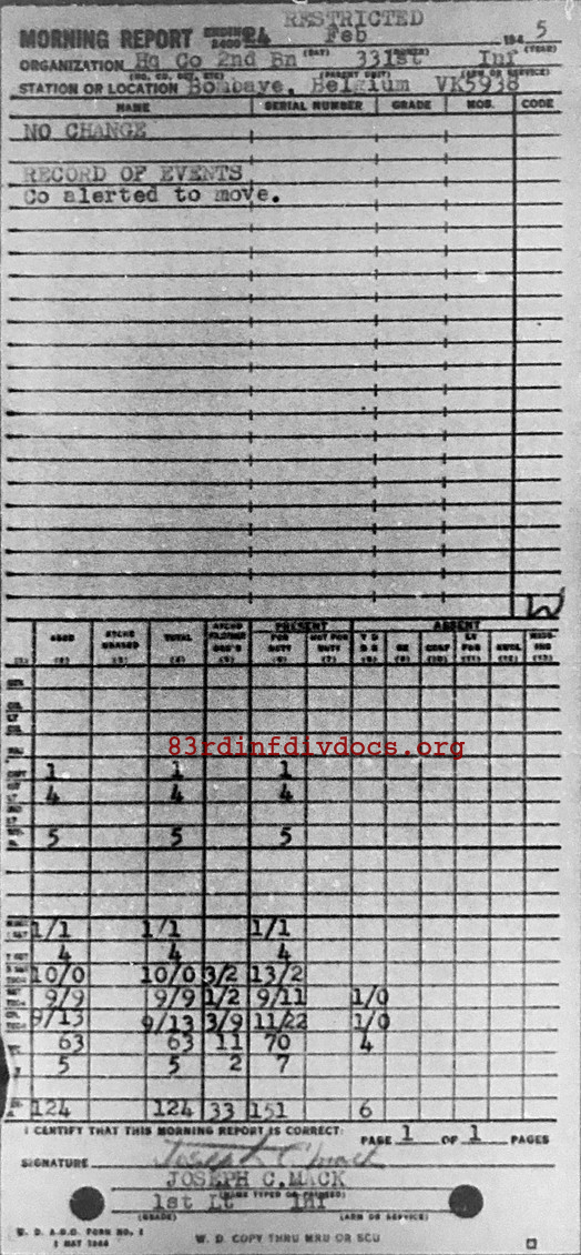 Morning report HQCO2BN/331 for February 24, 1945