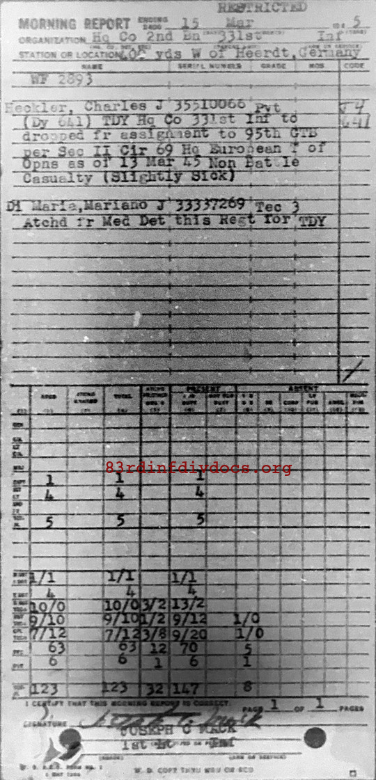 Morning report HQCO2BN/331 for March 15, 1945