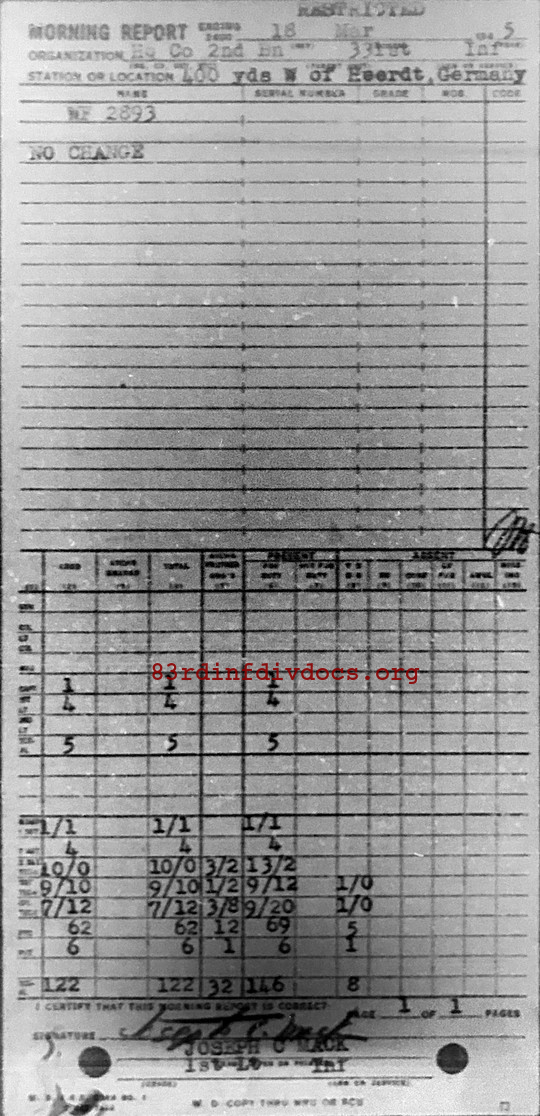 Morning report HQCO2BN/331 for March 18, 1945