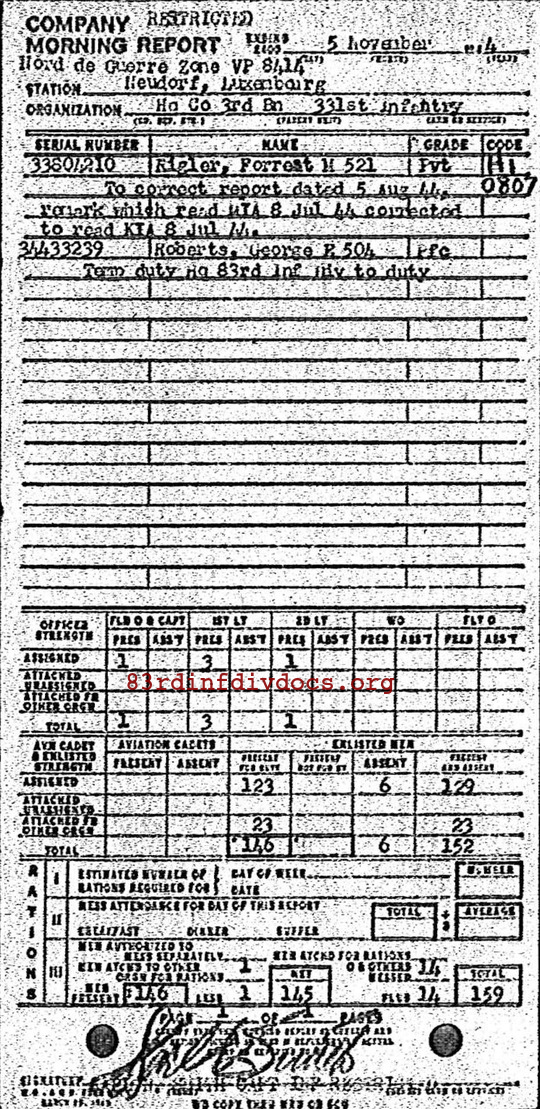 Morning report HQCO3BN/331 for November 5, 1944