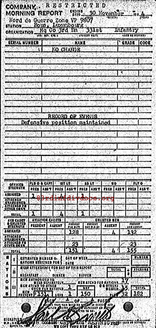 Morning report HQCO3BN/331 for November 30, 1944