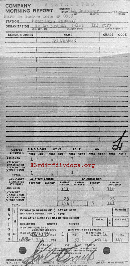 Morning report HQCO3BN/331 for December 14, 1944