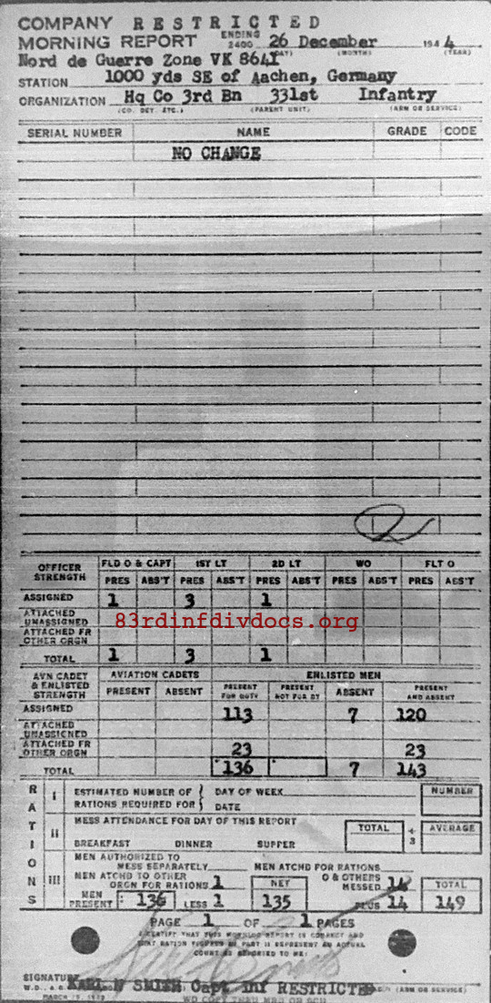 Morning report HQCO3BN/331 for December 26, 1944