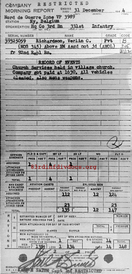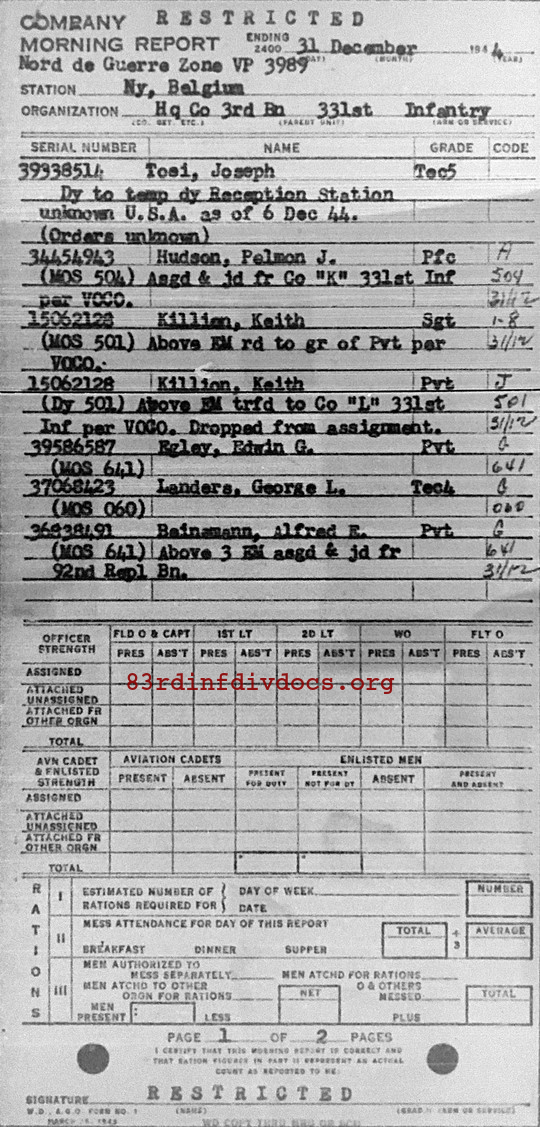 Morning report HQCO3BN/331 for December 31, 1944