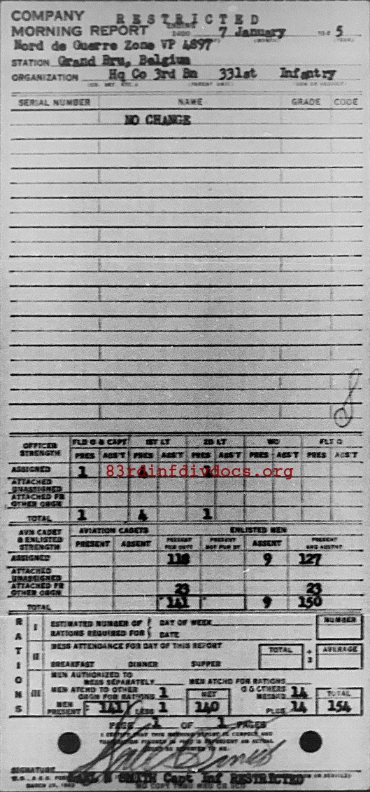 Morning report HQCO3BN/331 for January 7, 1945