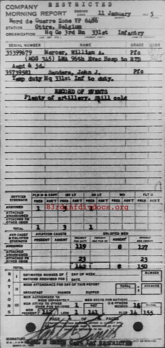 Morning report HQCO3BN/331 for January 11, 1945