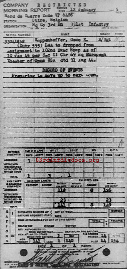 Morning report HQCO3BN/331 for January 12, 1945