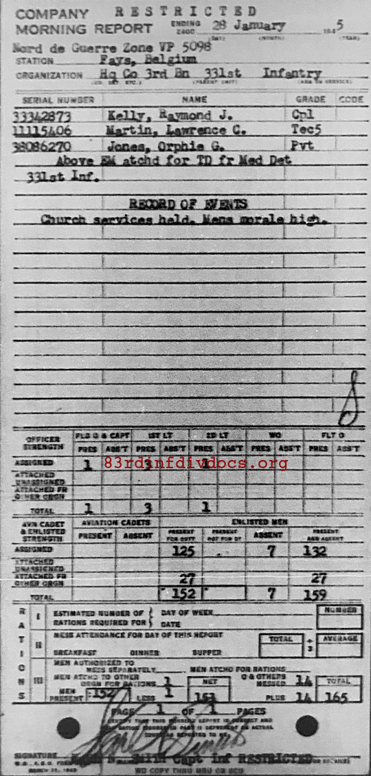 Morning report HQCO3BN/331 for January 28, 1945
