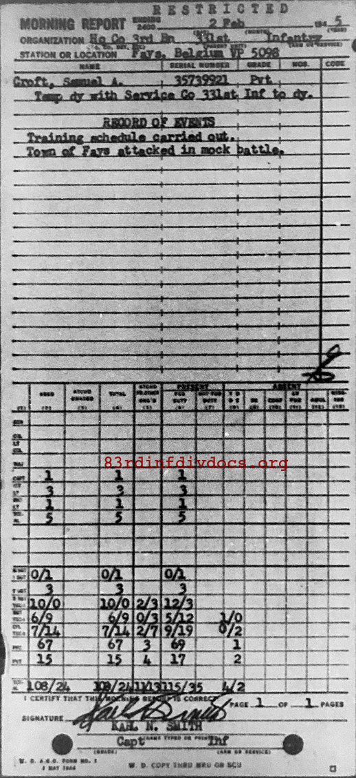 Morning report HQCO3BN/331 for February 2, 1945