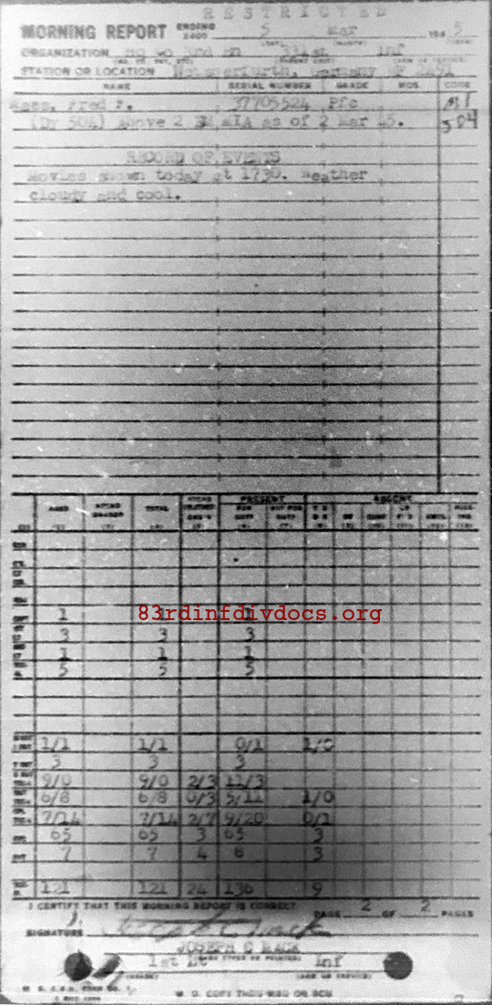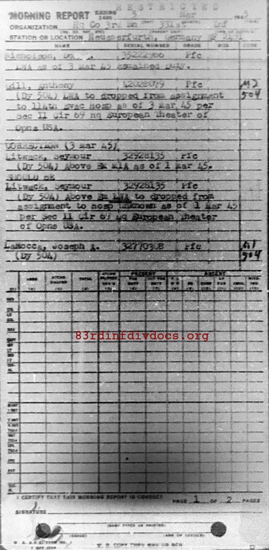Morning report HQCO3BN/331 for March 5, 1945