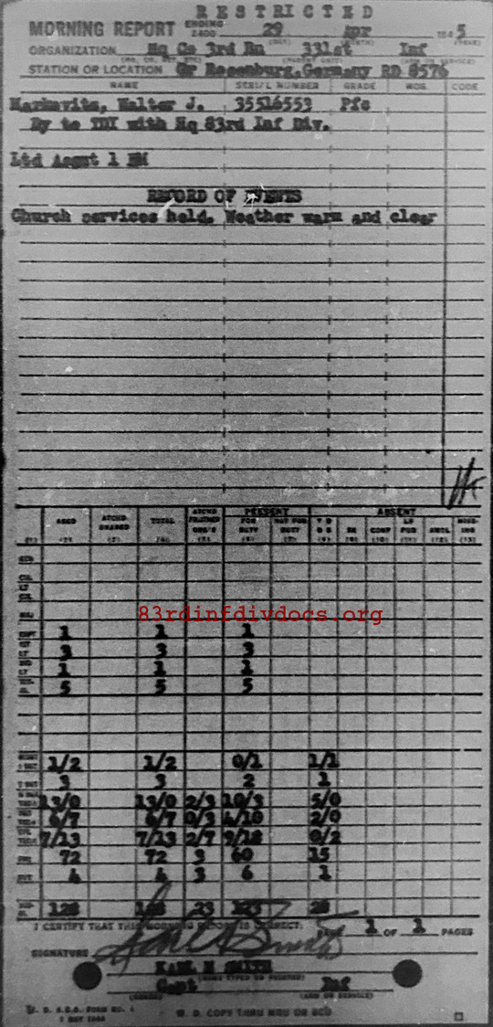 Morning report HQCO3BN/331 for April 29, 1945
