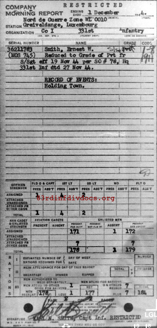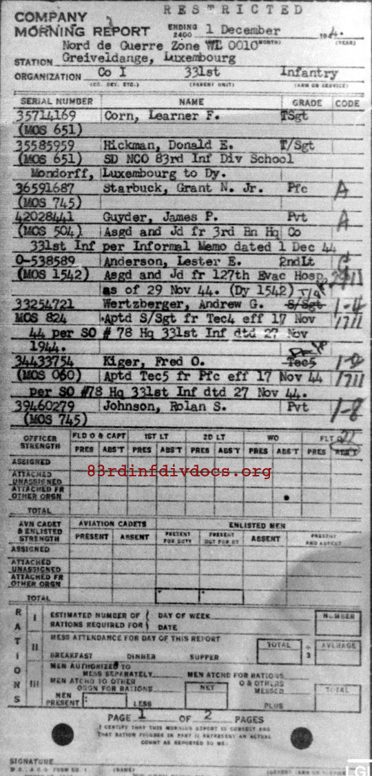 Morning report I/331 for December 1, 1944