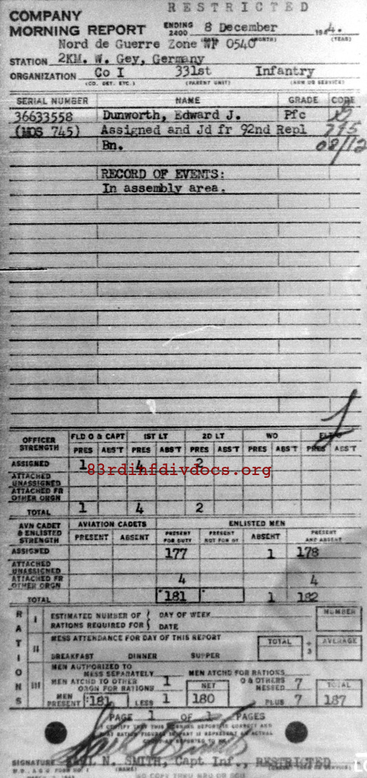 Morning report I/331 for December 8, 1944