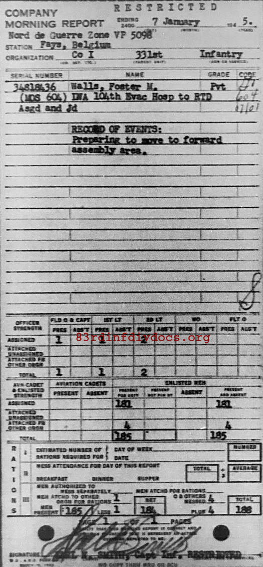 Morning report I/331 for January 7, 1945
