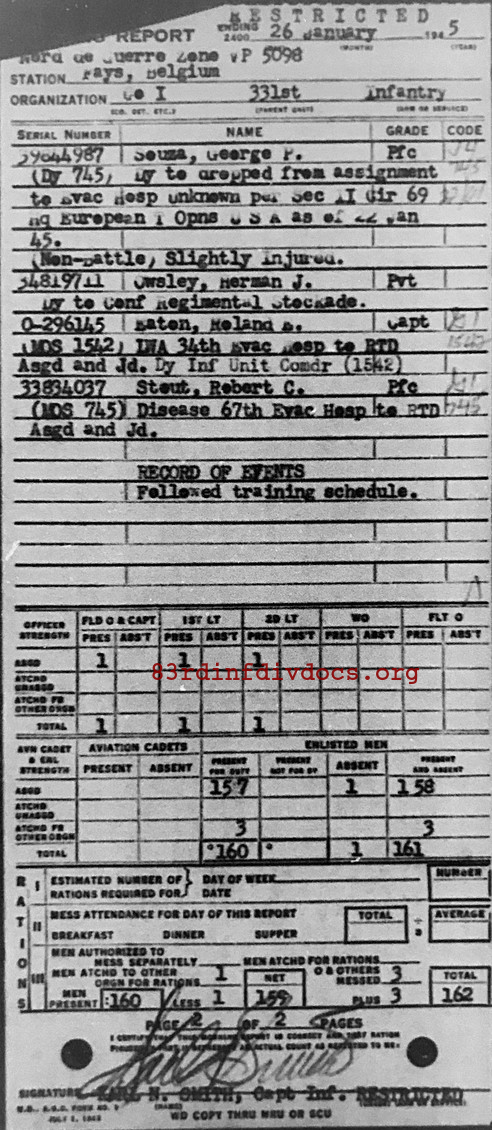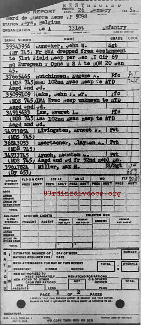 Morning report I/331 for January 26, 1945