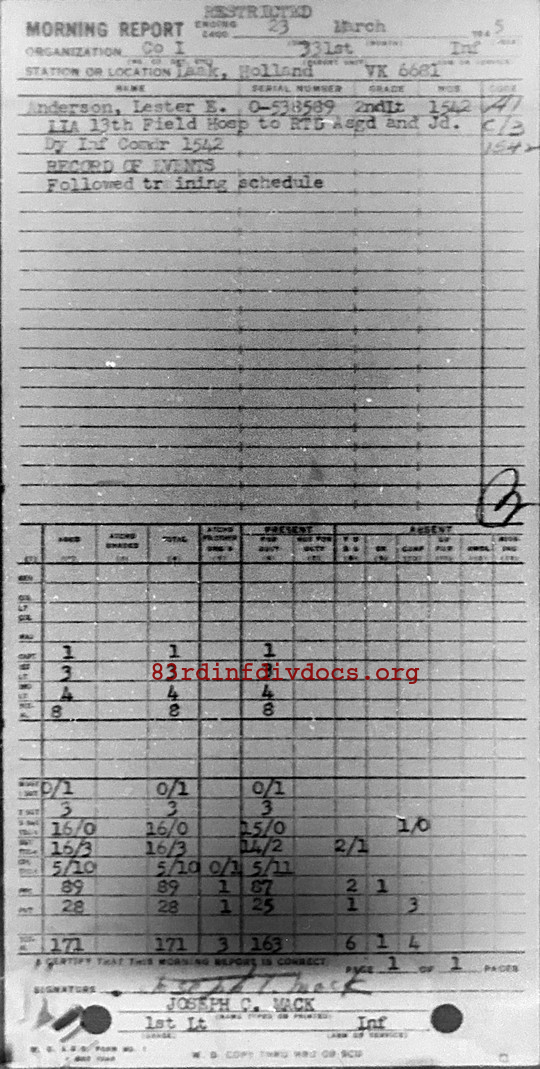Morning report I/331 for March 23, 1945