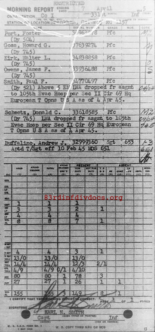Morning report I/331 for April 7, 1945