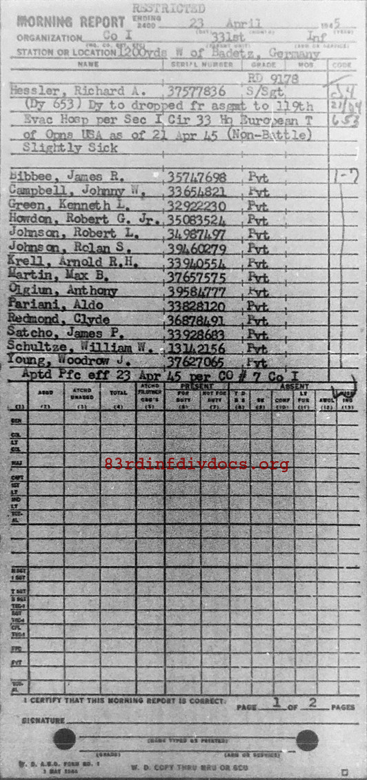 Station: 1200 yards west of Badetz, Germany1, rD9178