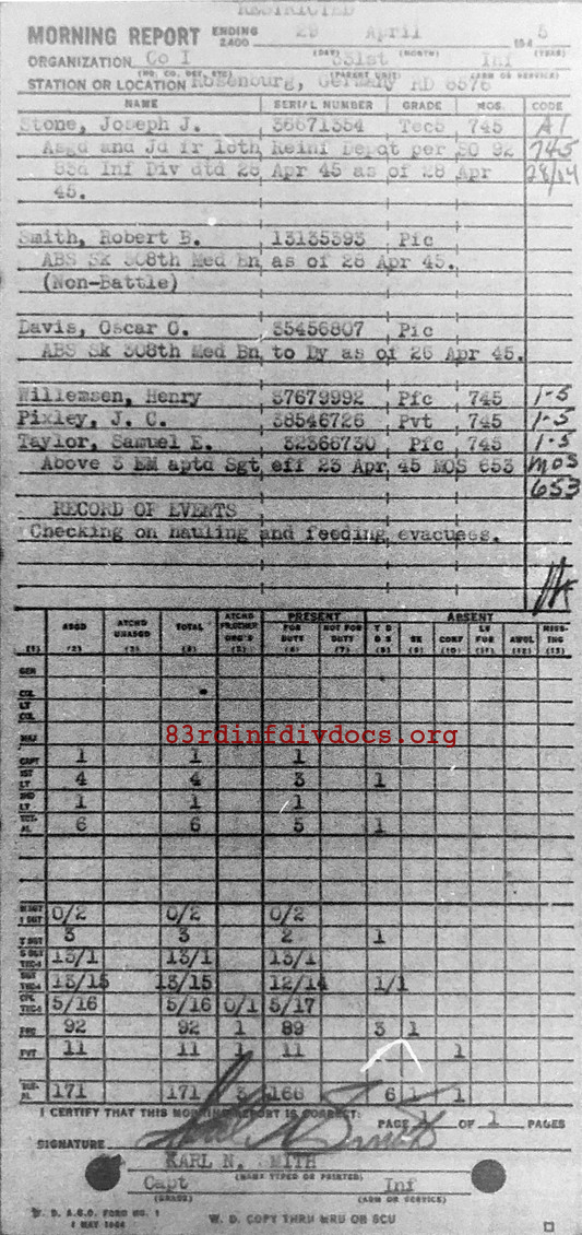 Morning report I/331 for April 29, 1945