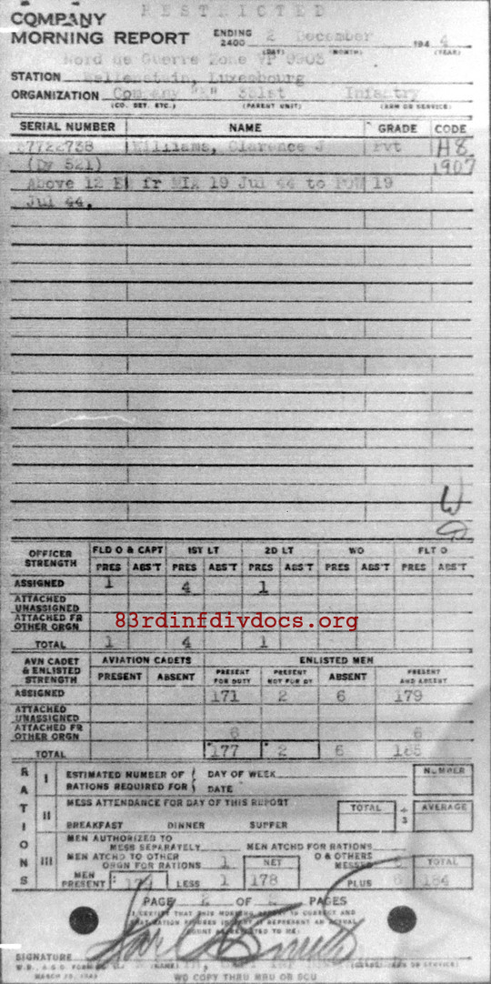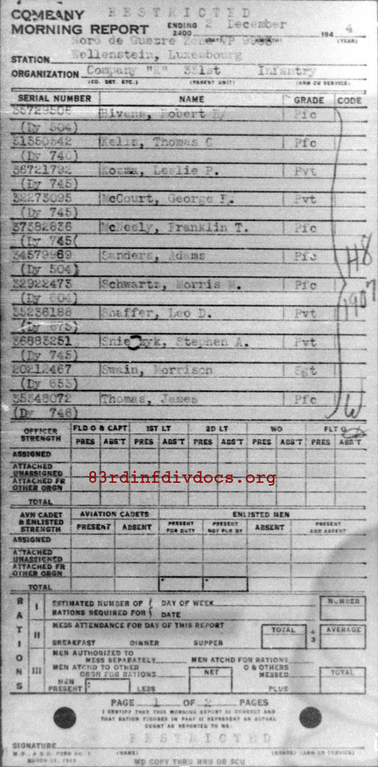 Morning report K/331 for December 2, 1944