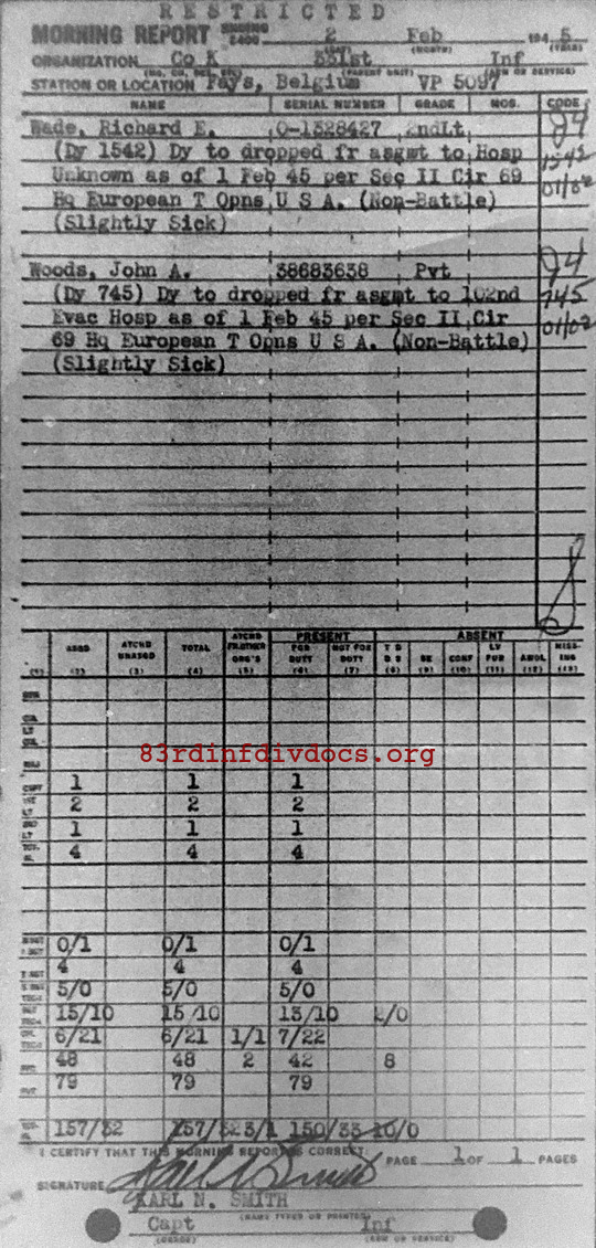 Morning report K/331 for February 2, 1945