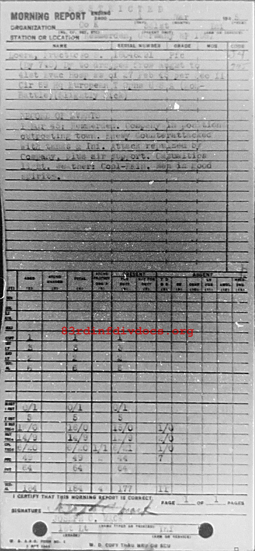 Morning report K/331 for March 1, 1945
