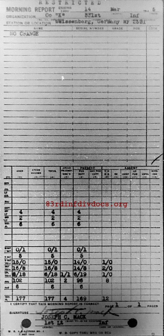 Morning report K/331 for March 14, 1945