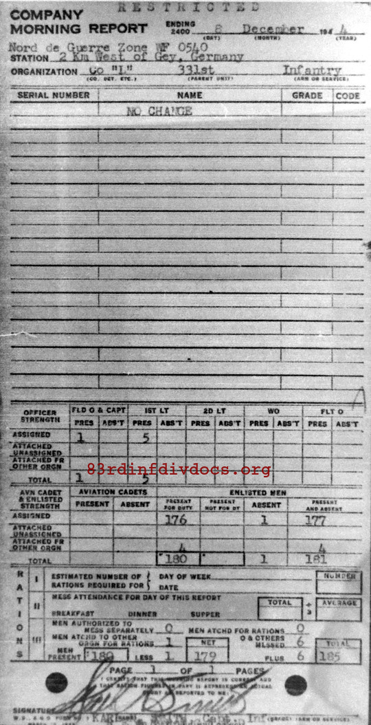 Morning report L/331 for December 8, 1944