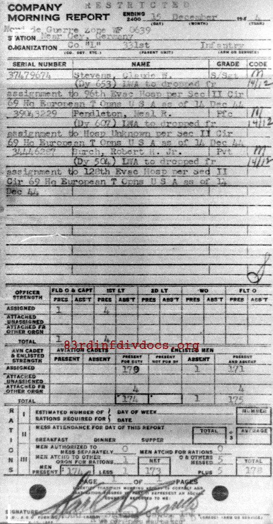 Morning report L/331 for December 15, 1944