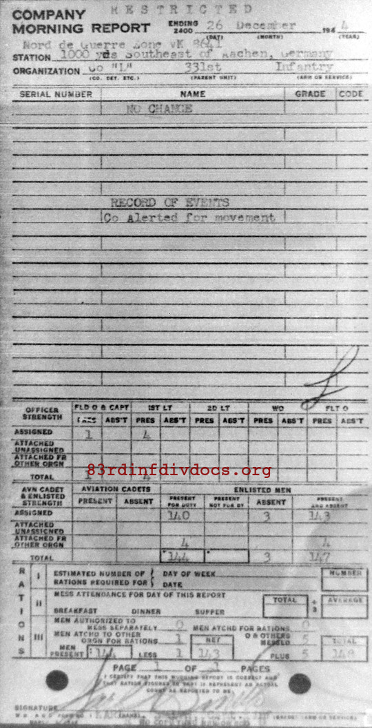 Morning report L/331 for December 26, 1944