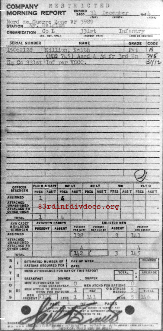 Morning report L/331 for December 31, 1944