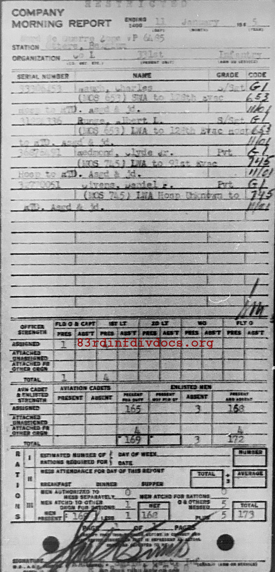 Morning report L/331 for January 11, 1945