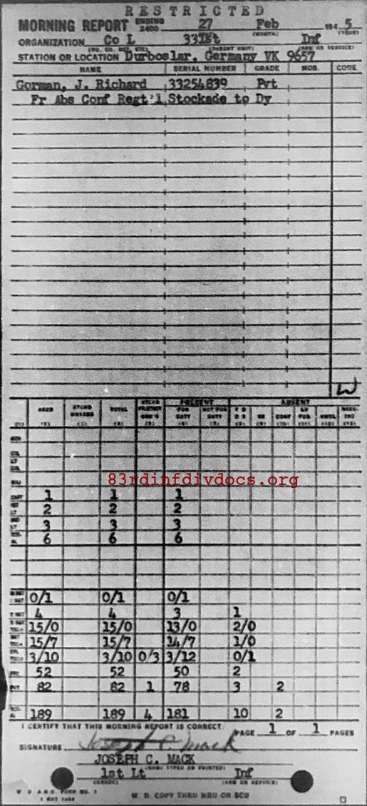 Morning report L/331 for February 27, 1945