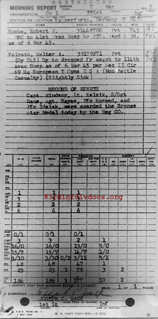 Morning report L/331 for March 7, 1945