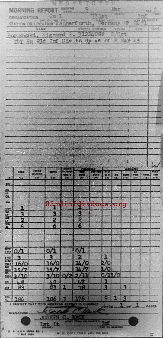 Morning report L/331 for March 9, 1945