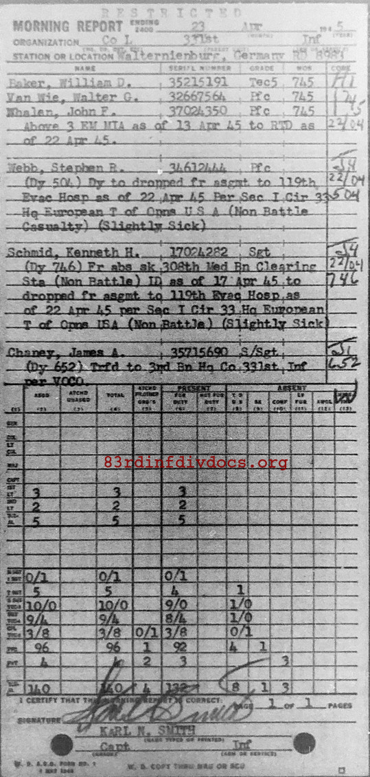 Morning report L/331 for April 23, 1945