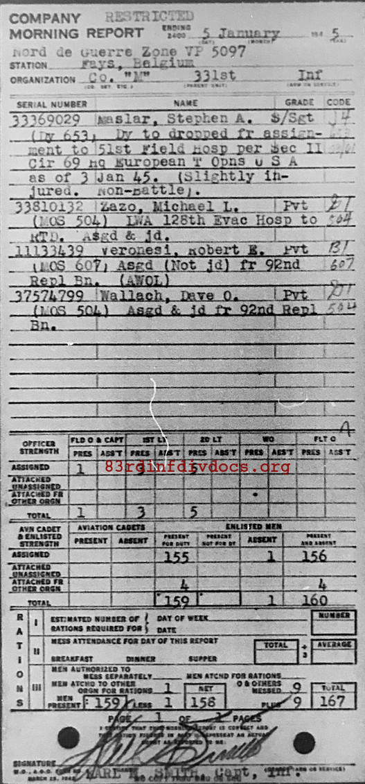 Morning report M/331 for January 5, 1945