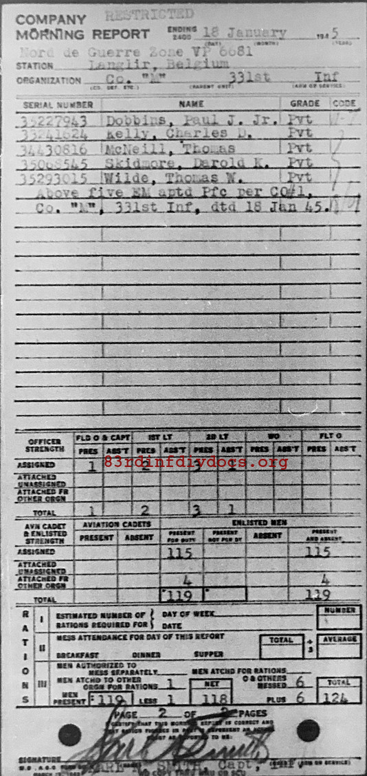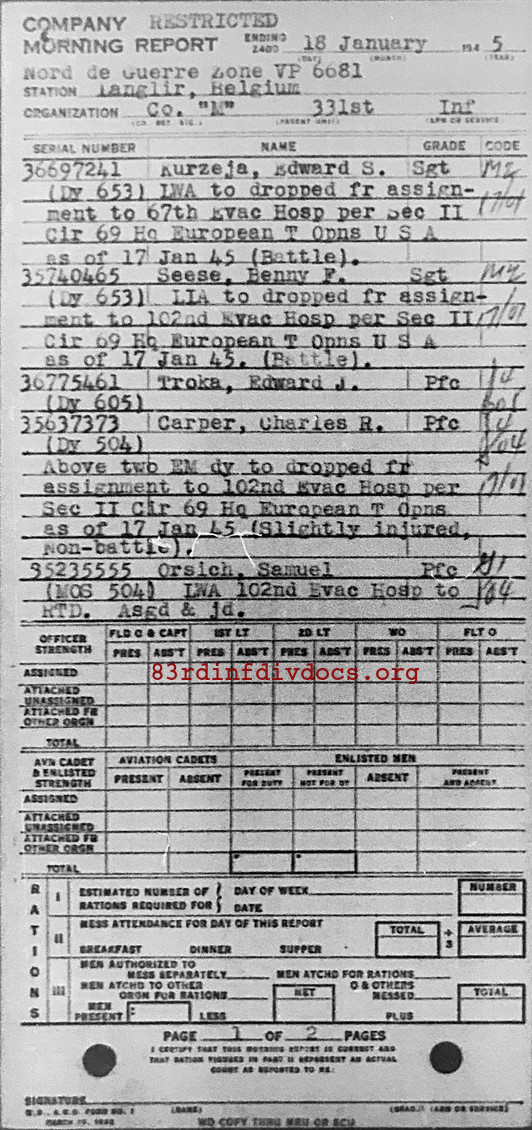 Morning report M/331 for January 18, 1945