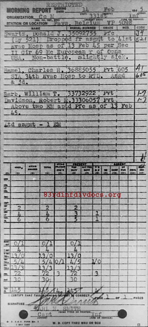 Morning report M/331 for February 14, 1945