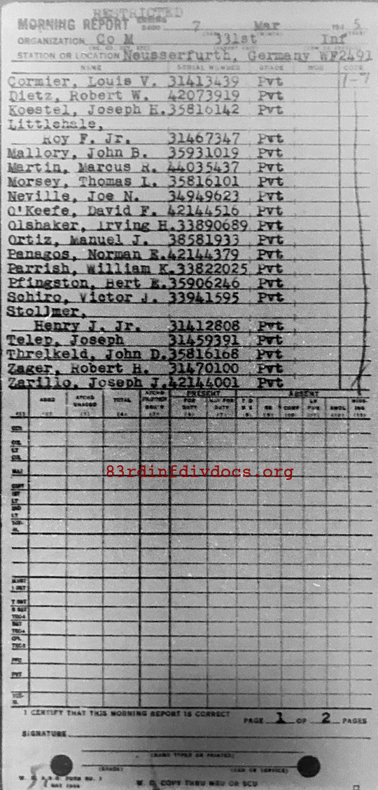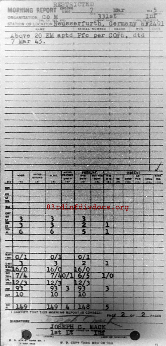 Morning report M/331 for March 7, 1945