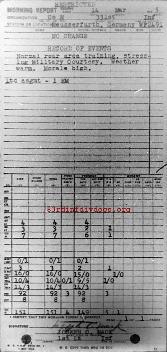 Morning report M/331 for March 14, 1945