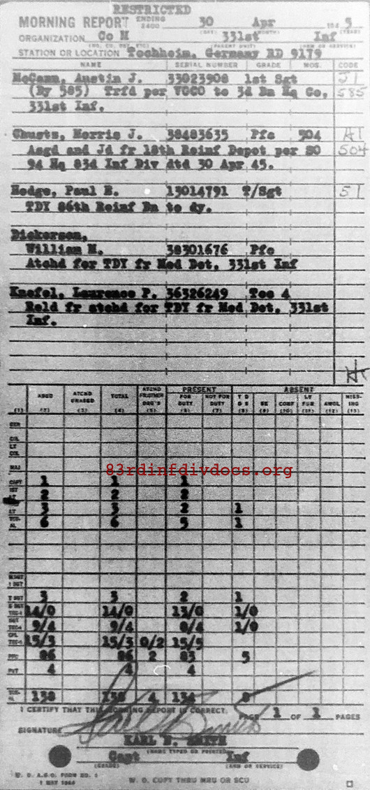 Morning report M/331 for April 30, 1945
