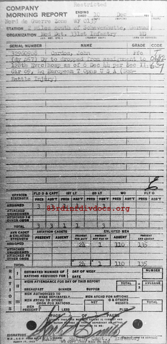 Morning report MEDDET/331 for December 10, 1944